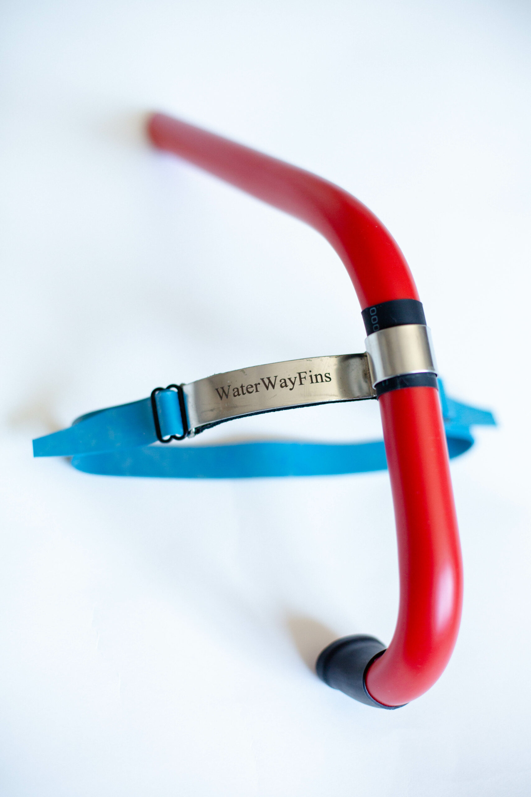 Classic design frontal snorkel for swimming and finswimming. With padded ring and adjustable rubber strap for perfect fit